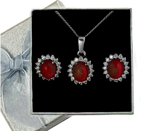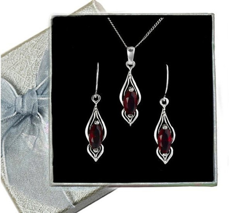 480/226 komplet srebrny z czerownym kamieniem