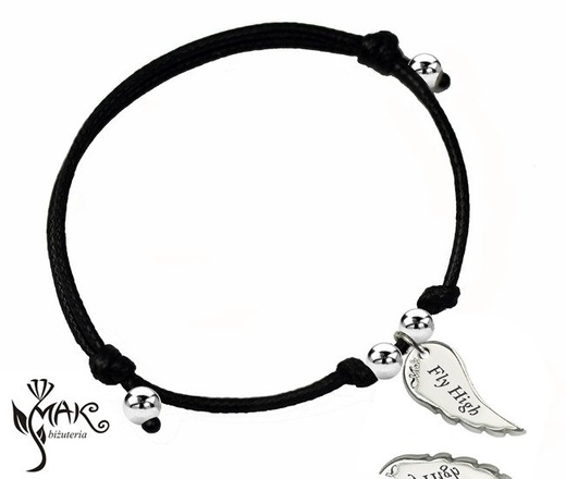 BR823 /8 BRANSOLETKA z grawerem na sznureczku skrzydło anioła