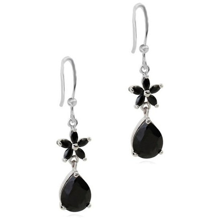 Kol 599/666 KOLCZYKI z cyrkonią łezką i małym czarnym kwiatuszkiem, srebrne