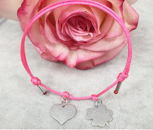 1125 bransoletka z grawerem srebro 925 serce na sznurku