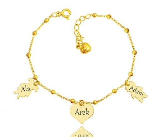 1195 bransoletka grawerowana trzy zawieszki srebro 925 pozłacane