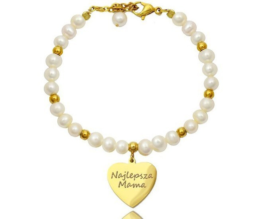 1109 bransoletka z grawerem złota serce stal perełki naturalne