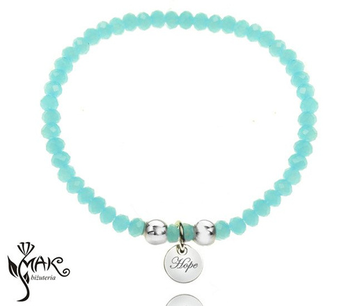 BR825 BRANSOLETKA Z GRAWEREM stal kryształki błękit kółko