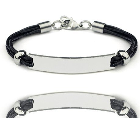 Br599/416 BRANSOLETKA Z GRAWEREM męska skóra czarna stalowa blaszka