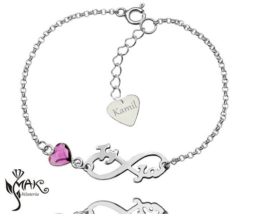 BR857 BRANSOLETKA Z GRAWEREM Swarovski Elements serce infinity