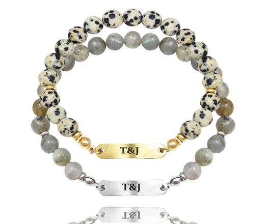 Bransoletka dla par stal szlachetna z kamieniami naturalnymi i grawerem 1863/3