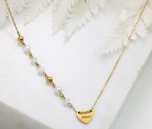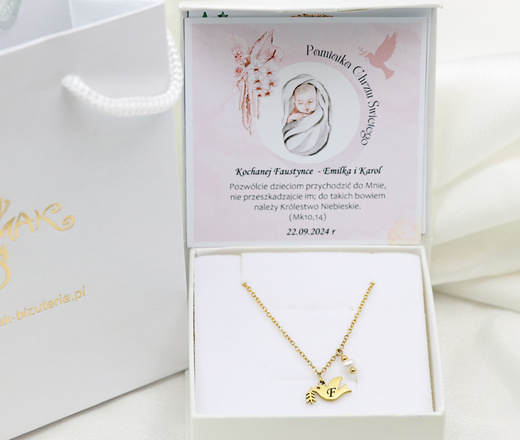 1796 naszyjnik grawerowany złoty stalowy z perełkami i gołębiem