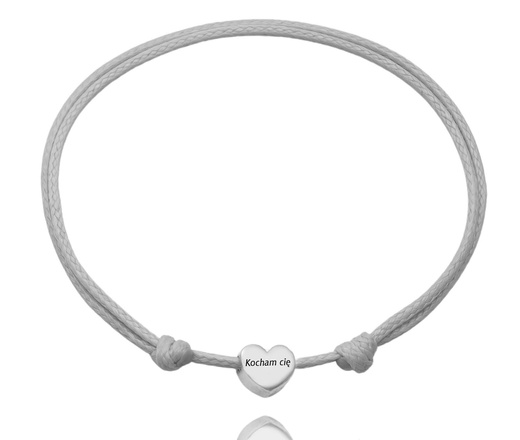 bransoletka na sznureczku 1752/8 serca z grawerunkiem, srebro 925