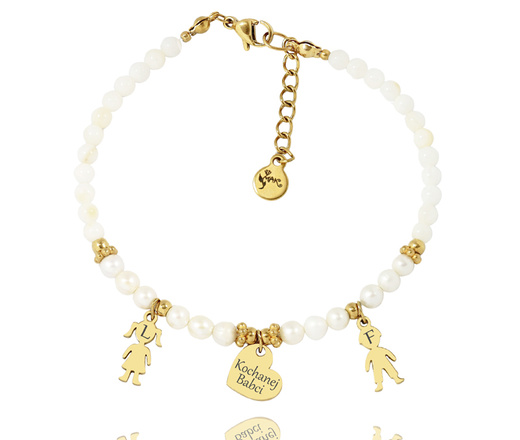 1746/10 Bransoletka złocona z grawerem i perłami dla babci