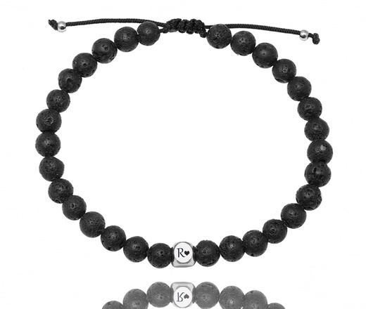 1658 bransoletka męska stalowa z grawerem i kamykami wulkanicznymi
