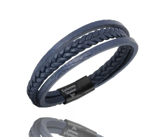 599/1135 męska bransoletka z grawerem skórzana granatowa