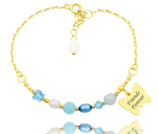 1281 bransoletka z grawerem srebrna 925 pozłacana błękitna z motylkiem