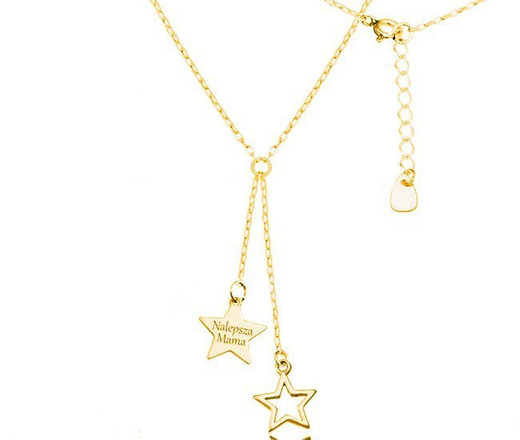 1160 naszyjnik z grawerem krawat, srebro 925 pozłacane gwiazdki
