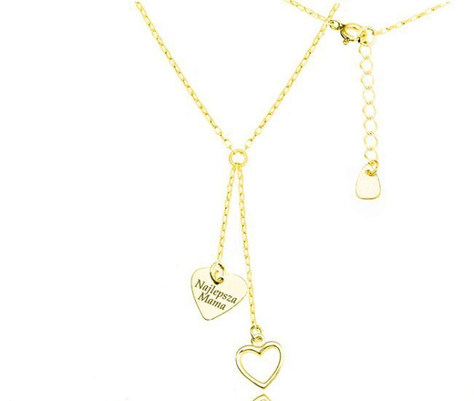1158 naszyjnik z grawerem krawat, srebro 925 pozłacane serca