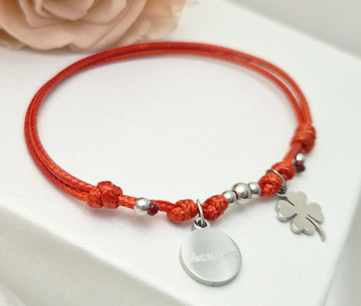 bransoletka dla mamy z grawerowaną zawieszką na sznureczku 1638/7