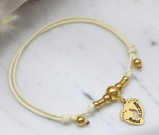 Bransoletka z grawerunkiem 925 złota na sznureczku stopki