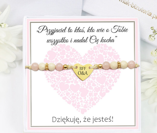 1736 różowa bransoletka złocona z grawerem i kamieniami naturalnymi Premium