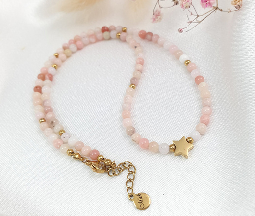 1696 naszyjnik z grawerowana gwiazdką i opalem różowym