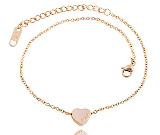 1147 bransoletka na rękę z grawerem, różowe złoto serduszko lucky