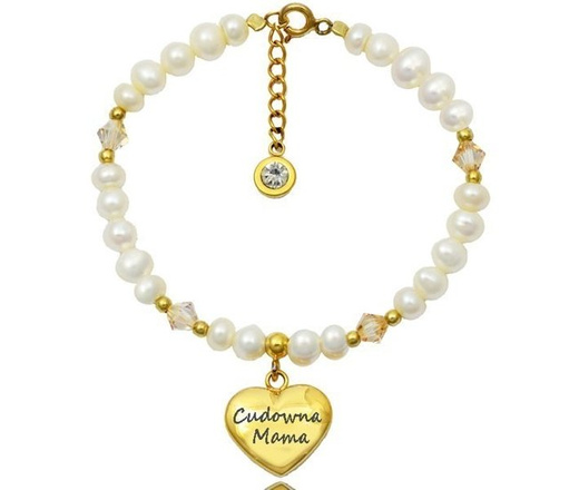 1105 bransoletka z grawerem złota serce stal perełki naturalne Swarovski Elements