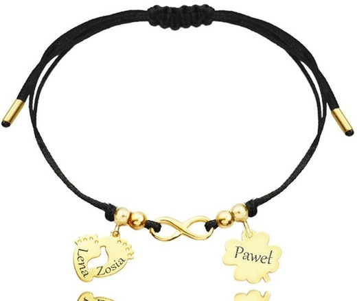 1028 BRANSOLETKA Z GRAWEREM złota na sznureczku infinity serce stópki