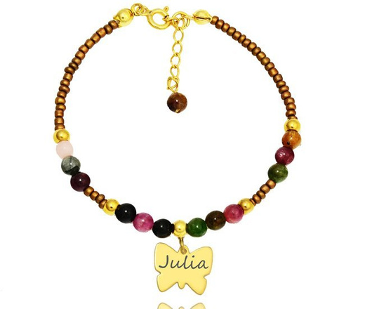1098 bransoletka z grawerem pozłacane srebro 925 motyl turmalin