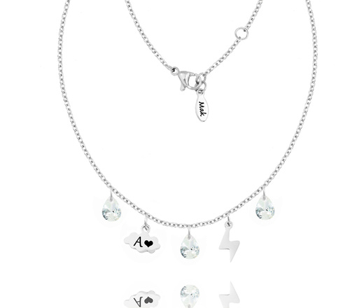 1563 naszyjnik chmurka kropla piorun z grawerem srebrny stalowy z zawieszkami