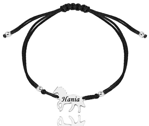 1344 BRANSOLETKA Z GRAWEREM stalowa na sznureczku